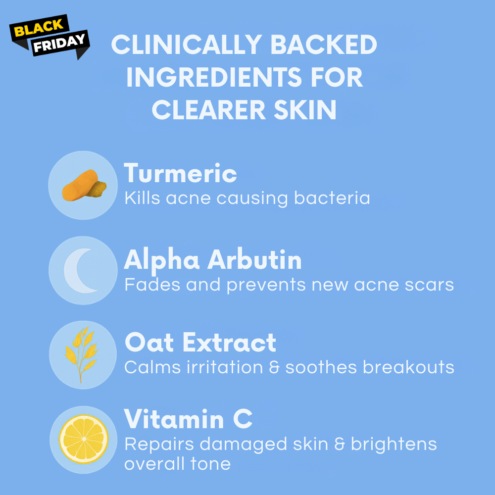 Alpha-Arbutin: A gentle yet effective brightening agent that targets uneven skin tone and helps minimize discoloration caused by frequent breakouts.